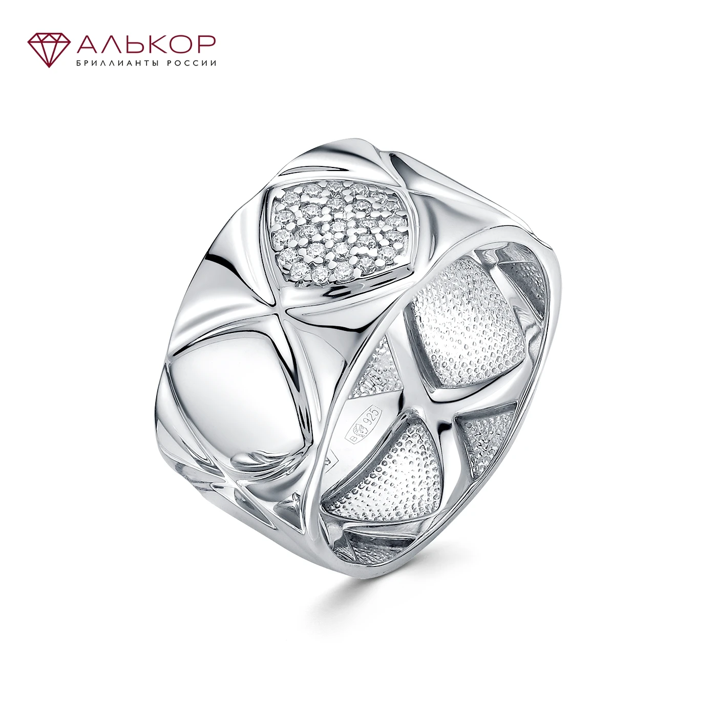 Кольцо тренд 2021 из серебра 925 с покрытием из родия, вставка: фианит. Бесплатная доставка с ювелирной фабрики в России