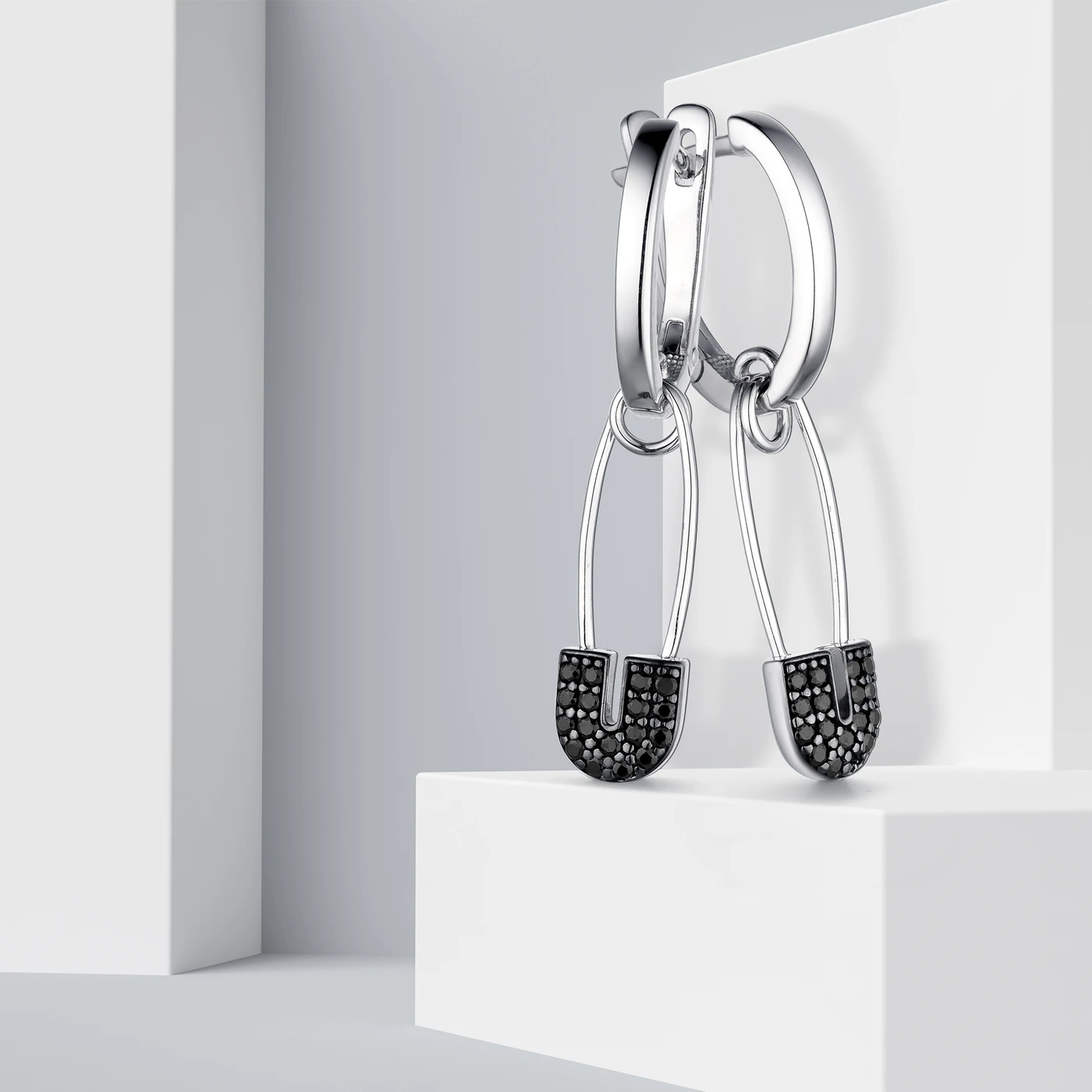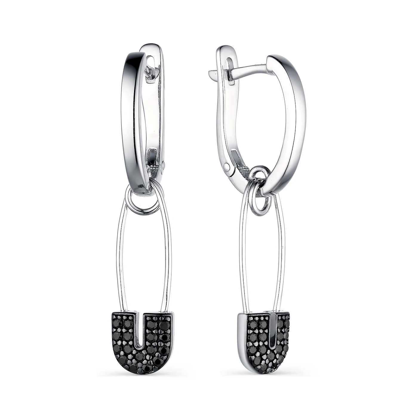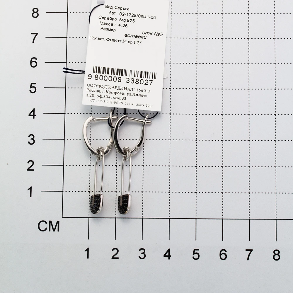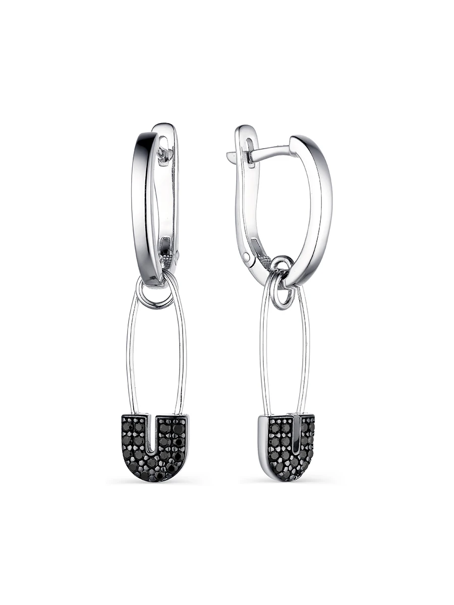 О товаре Серьги из серебра с дизайном в виде булавки и дорожкой из чёрных фианитов станет модным талисманом удачи.