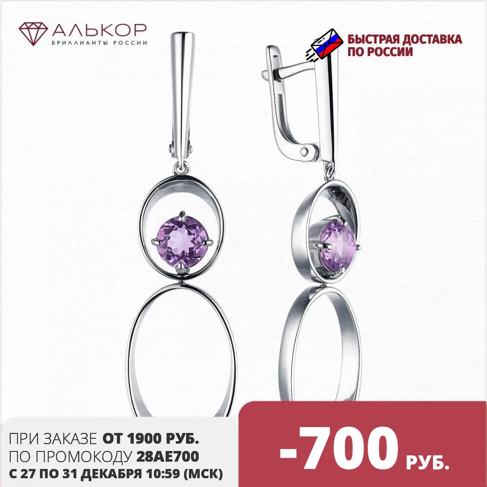 Серьги 2021 тренд из серебра 925 с покрытием из родия, вставка: аме...