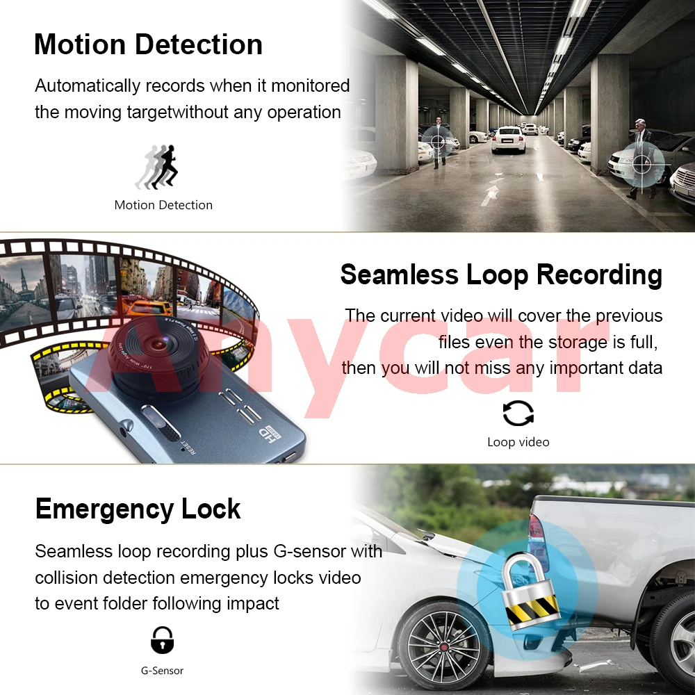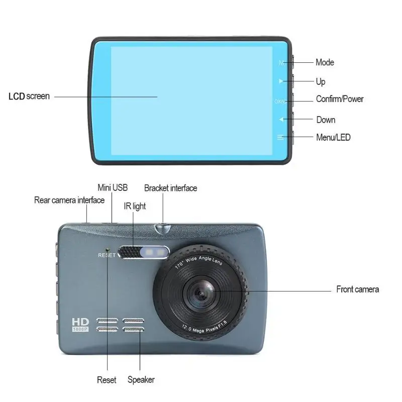 Автомобильный видеорегистратор, 2021 Новый Автомобильный видеорегистратор, видеорегистратор заднего вида с двумя объективами, 1080P, 3,6 дюйма, Full HD, циклическая запись, акселерометр