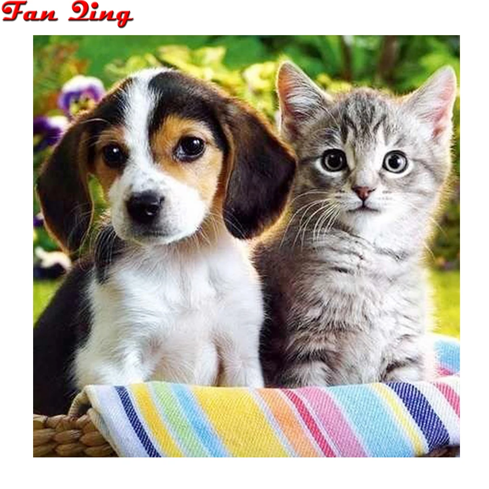DIY Алмазная картина животные Ремесленная поделка, алмазная вышивка кошка полная круглая/квадратная дрель 5D Бриллиантовая мозаичная собака украшение подарки