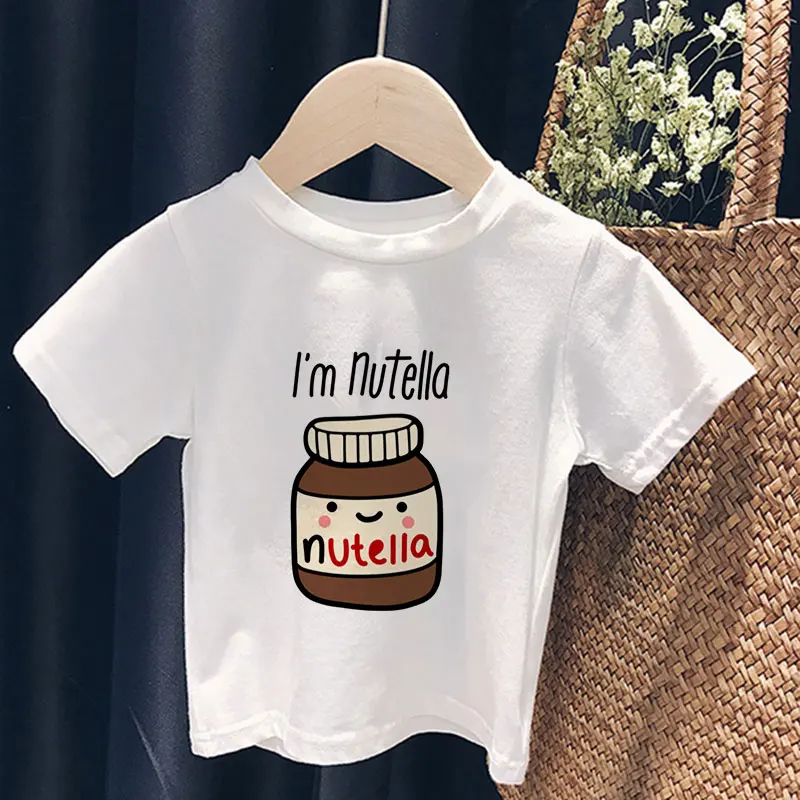 2020 детская одежда унисекс, милые топы с принтом шоколадного соуса Нутеллы для девочек, Повседневная футболка для мальчиков, модная футболка для маленьких девочек