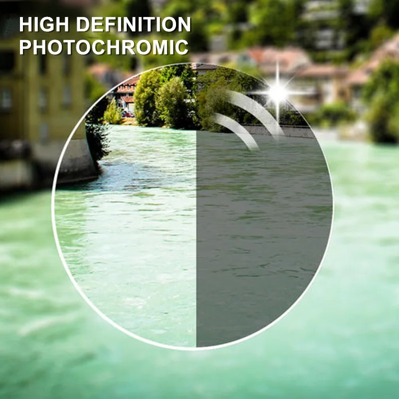 Что касается фотохромных линз, они будут прозрачными и бесцветными в помещении или в темных местах, но они изменят цвет на улице или на солнце, чтобы защитить ваши глаза от сильного светильник.