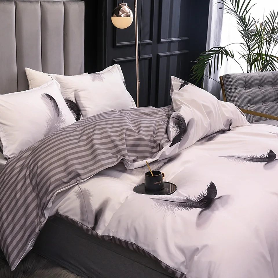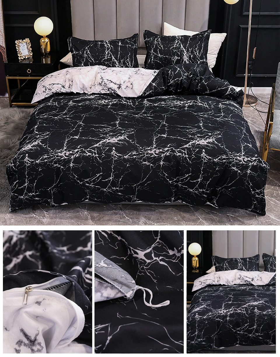 Черный, белый, синий, мрамор, перо, бохо, серая сетка, комплект постельного белья, пододеяльник и наволочка, чехол, постельное белье, Королевский размер, постельное белье, 3 шт.