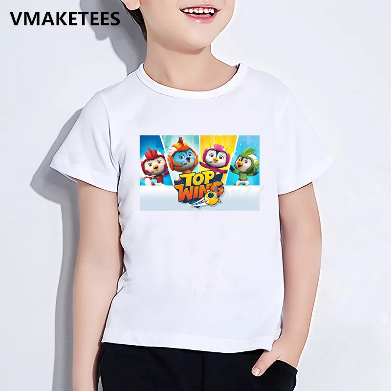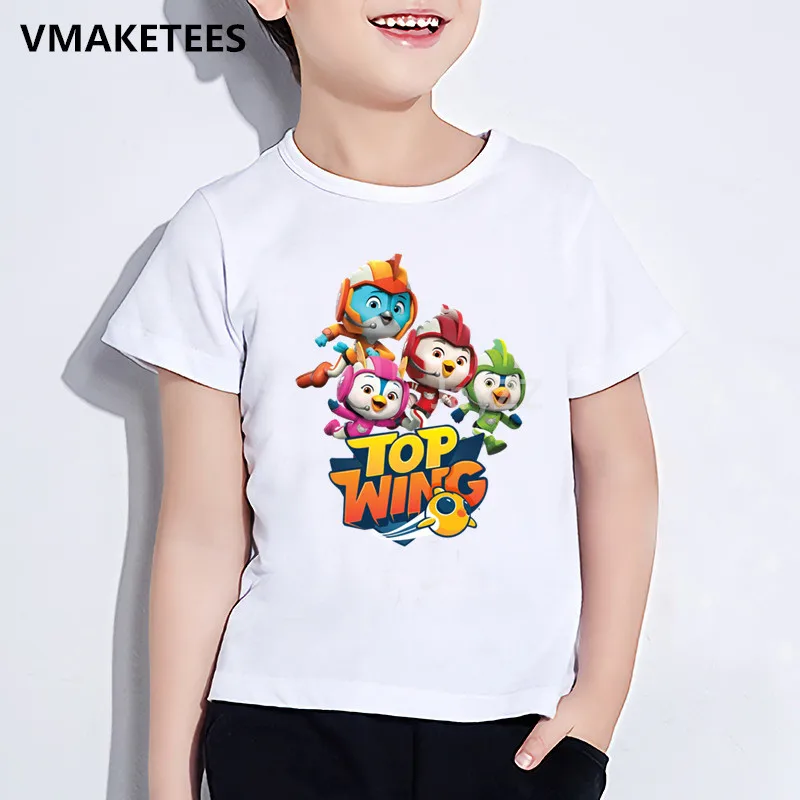 Детская забавная футболка с мультяшным принтом с крыльями, Детская Милая одежда, летняя белая детская футболка для девочек и мальчиков