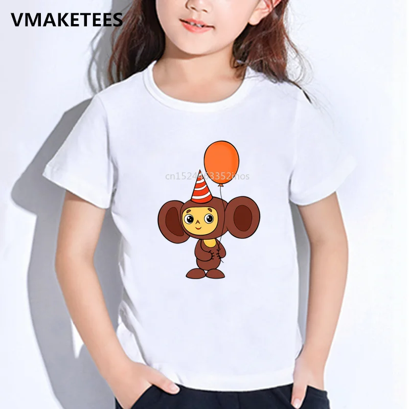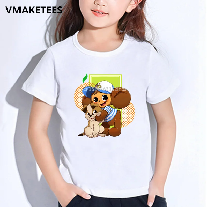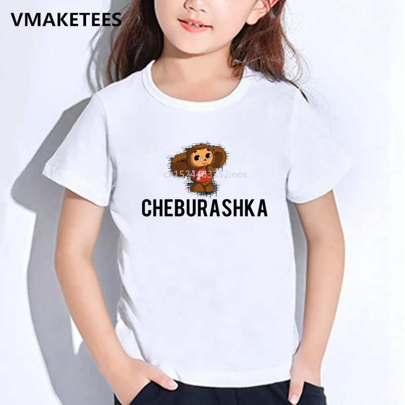Детские летние футболки для девочек и мальчиков, Детская футболка с принтом Чебурашки из русского мультфильма, Веселая детская одежда Chebu