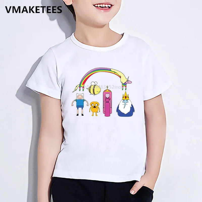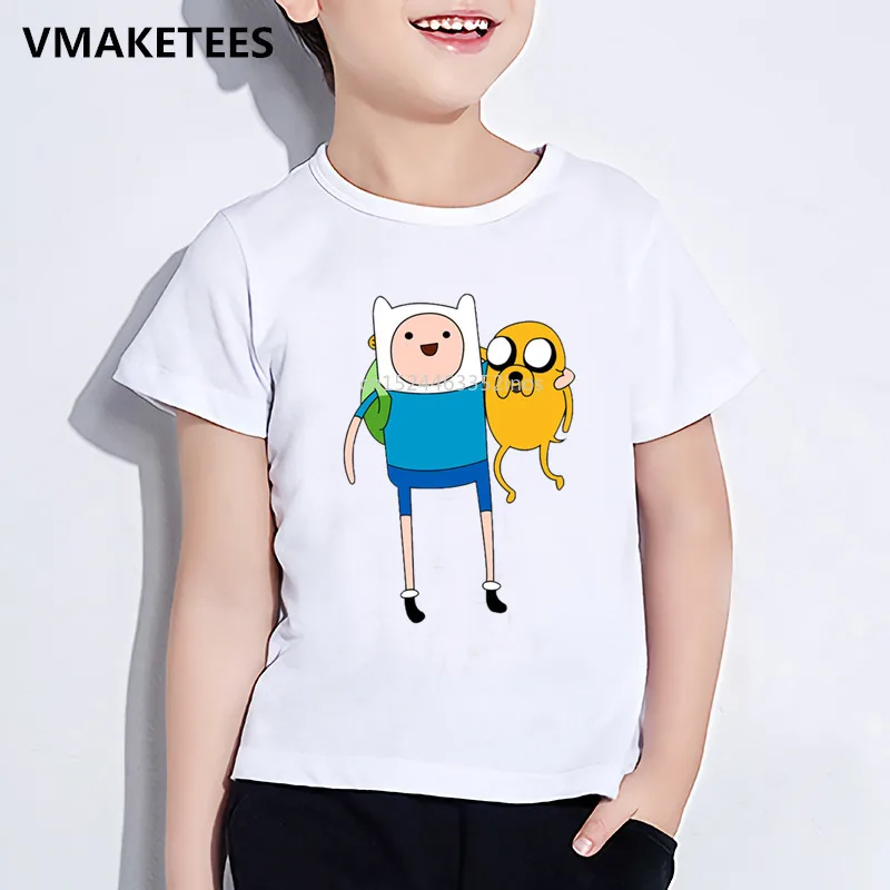 Детская летняя футболка для девочек и мальчиков, Детская мультяшная Футболка с принтом времени приключений Финна и Джейка, Забавная детская одежда