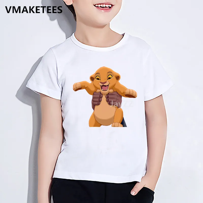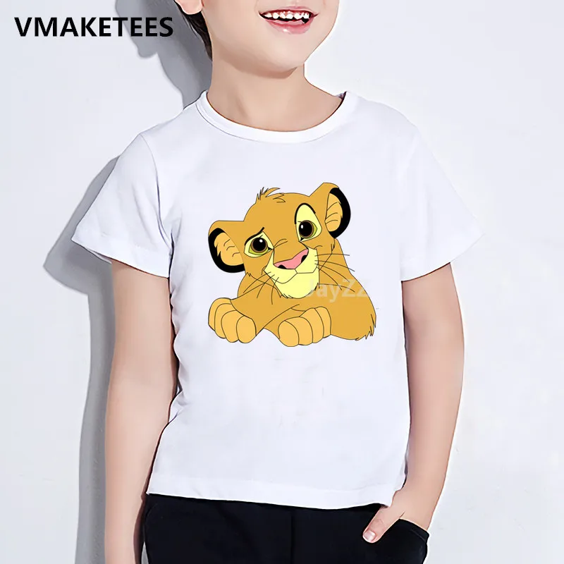 Детская футболка с милым рисунком Симбы и короля льва, детская забавная одежда, летняя белая детская футболка для девочек и мальчиков