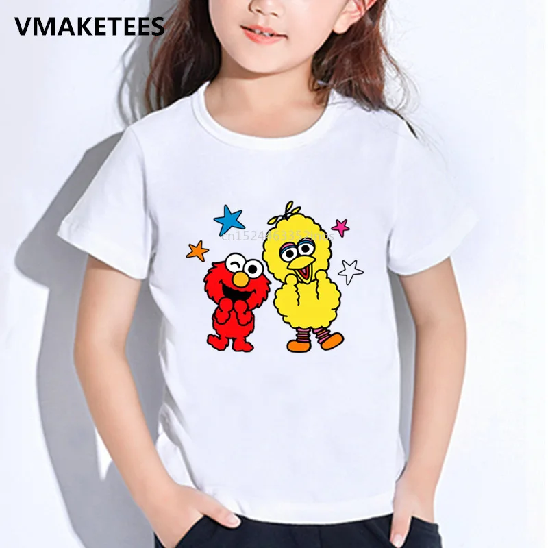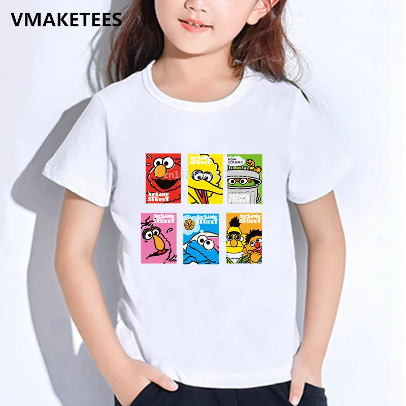 Футболка с коротким рукавом для девочек и мальчиков, Детская футболка с мультипликационным принтом Улица Сезам, Забавная детская одежда с изображением печенья, монстра и Элмо