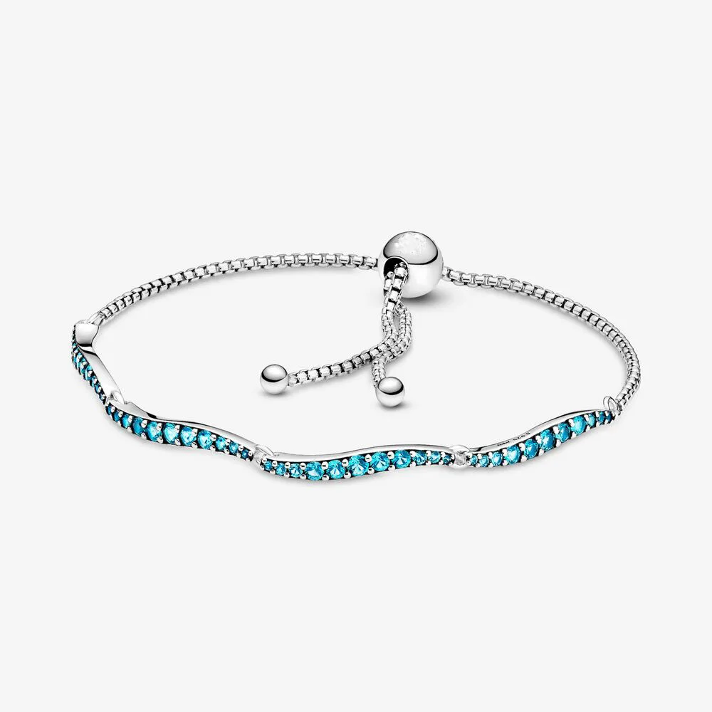 Новинка, серебро 925 пробы, синие волнистые фотообои для женщин, модные Кристаллы, синие и прозрачные блестки, аксессуары для рукоделия