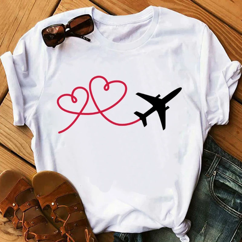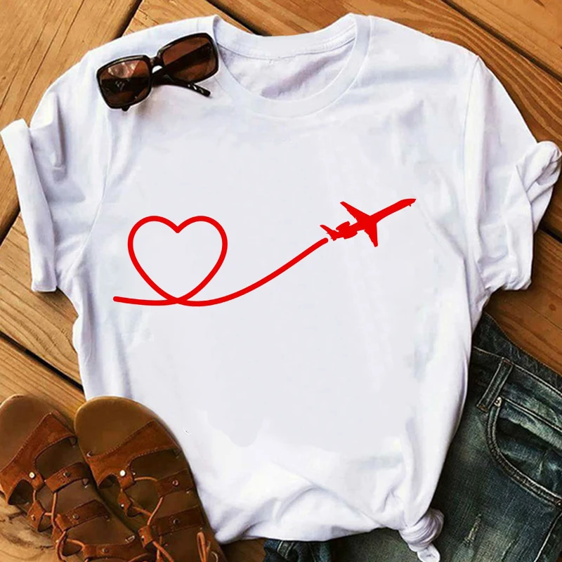 Футболка женская с принтом в виде летательного аппарата и сердца