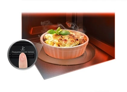 Режим "Поддержание тепла" сохраняет оптимальную температуру блюд, не переваривая или пережаривая их, до момента их подачи. В результате они сохраняют свой вкус и текстуру и всегда выглядят как свежеприготовленные.