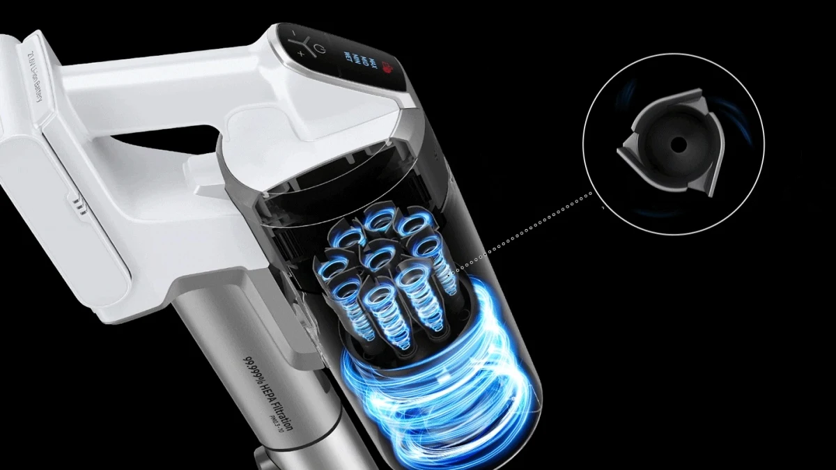 Дышите чистым воздухом благодаря 5-ступенчатой системе HEPA фильтрации*. Основной циклон и металлическая сетка фильтра собирают крупные частицы, а микрофильтр HEPA задерживает до 99.999%** мелких частиц пыли и аллергенов, включая частицы размером 0.3 ~ 10 мкм***.