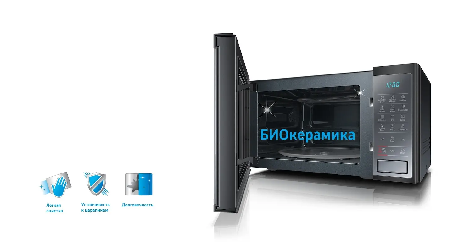 Размягчение масла или растапливание шоколада? Микроволновая печь Samsung – ваш соус-шеф. Выберите удобный режим растапливания (шоколад, сахар или масло) для идеальных ингредиентов вашего блюда.
