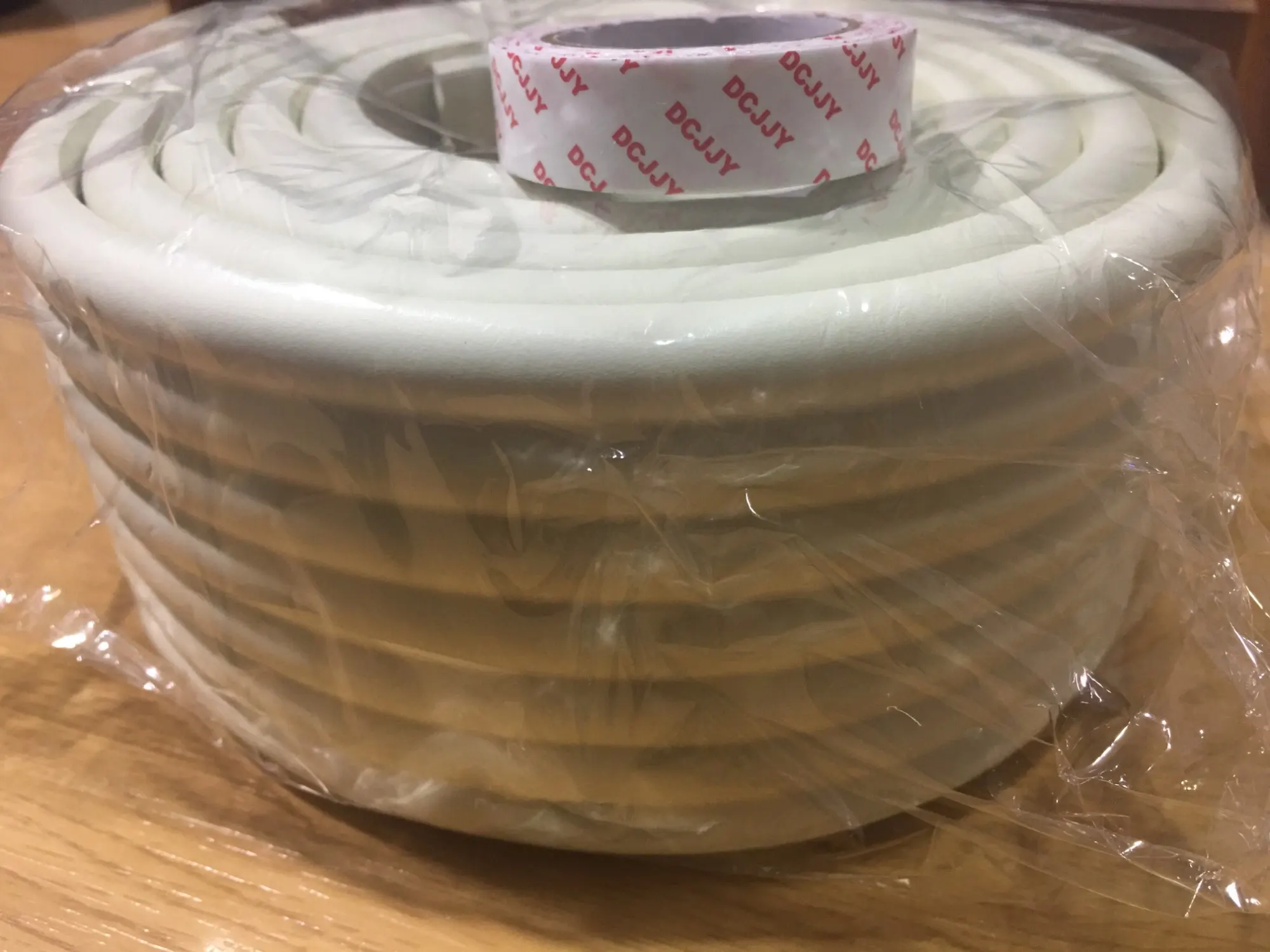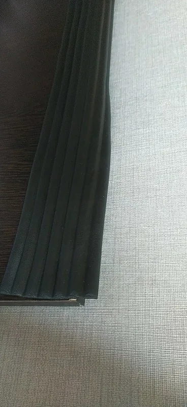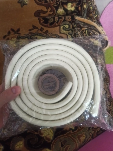 Очень хорошая лента , толщина около 1 см, ширина 7.5 см, длина 2 метра. Мягкая, не силикон, скорей вспененный какой-то материал . Единственный недостаток, который был отмечен-плохо клеится к дсп (клейкая лента идет в наборе), надо дополнительно придумывать что-то