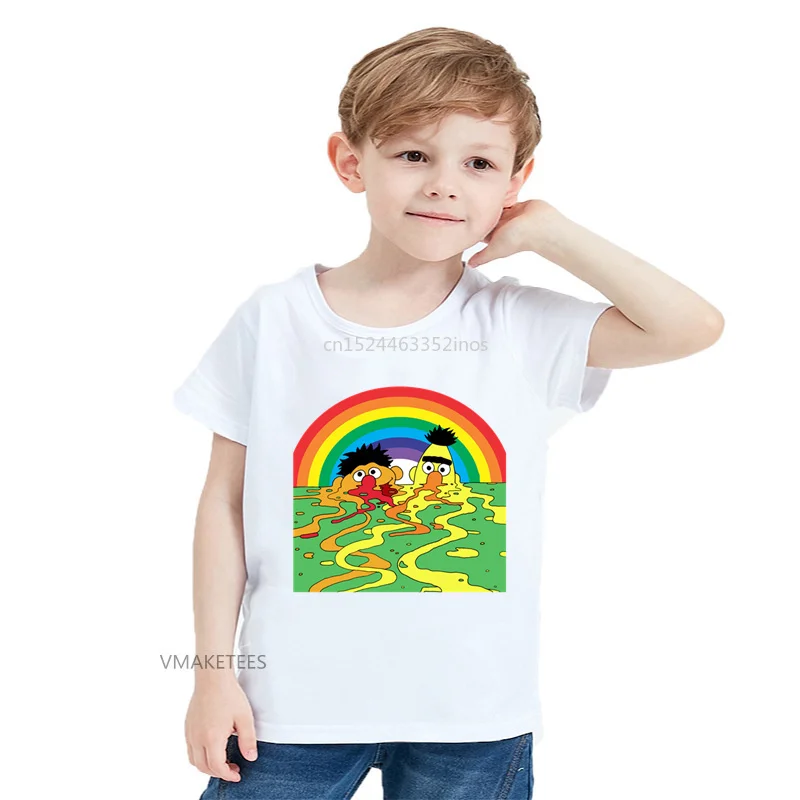 2018 летняя мультяшная футболка для девочек и мальчиков, Детская футболка с принтом Улица Сезам, Эрни и Берт, Детская забавная одежда
