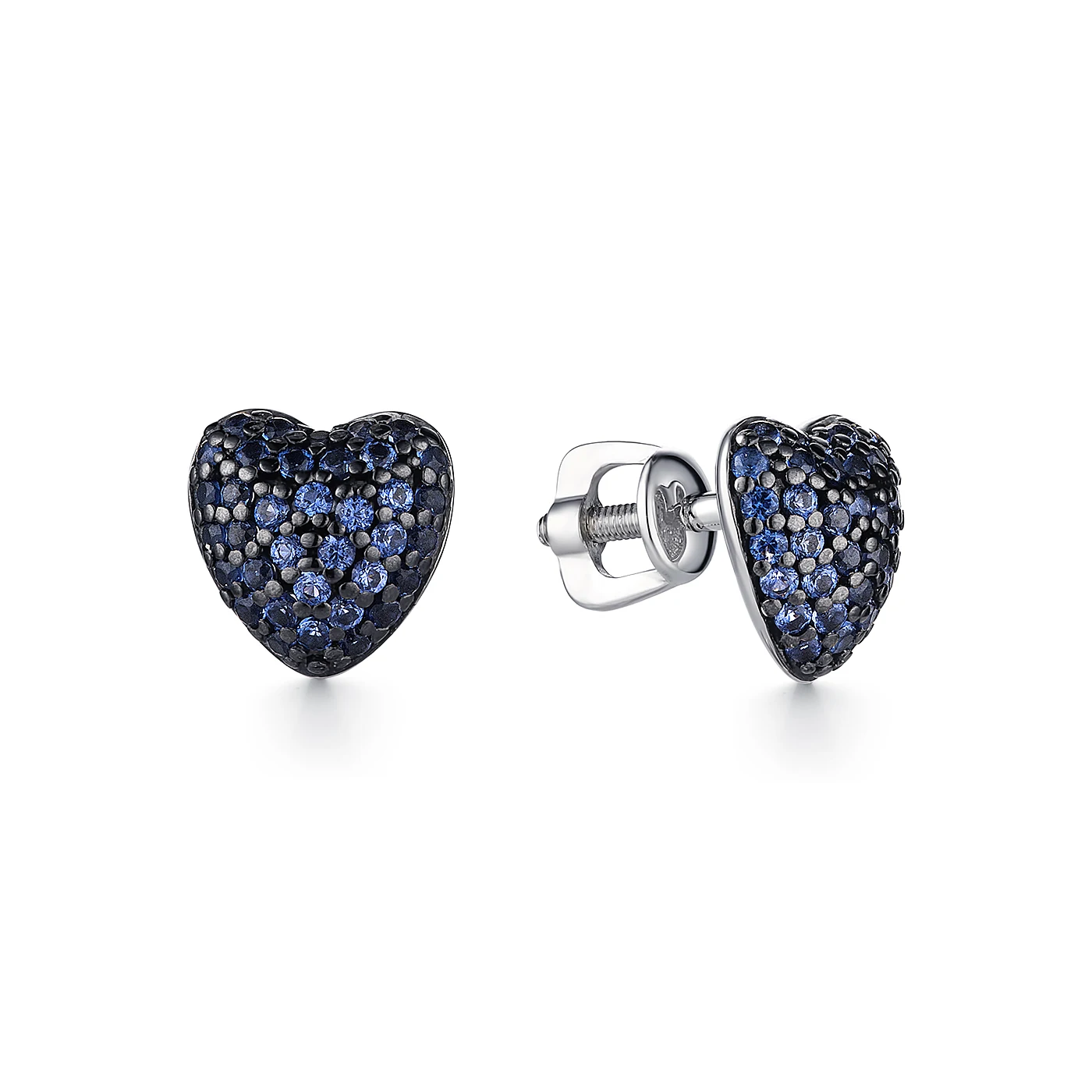 Серьги-пусеты из серебра в виде сердец, усыпанных сверкающими фианитами, придадут романтичности вашему образу. Высота изделия: 8,7 мм. Ширина изделия: 8,7 мм.