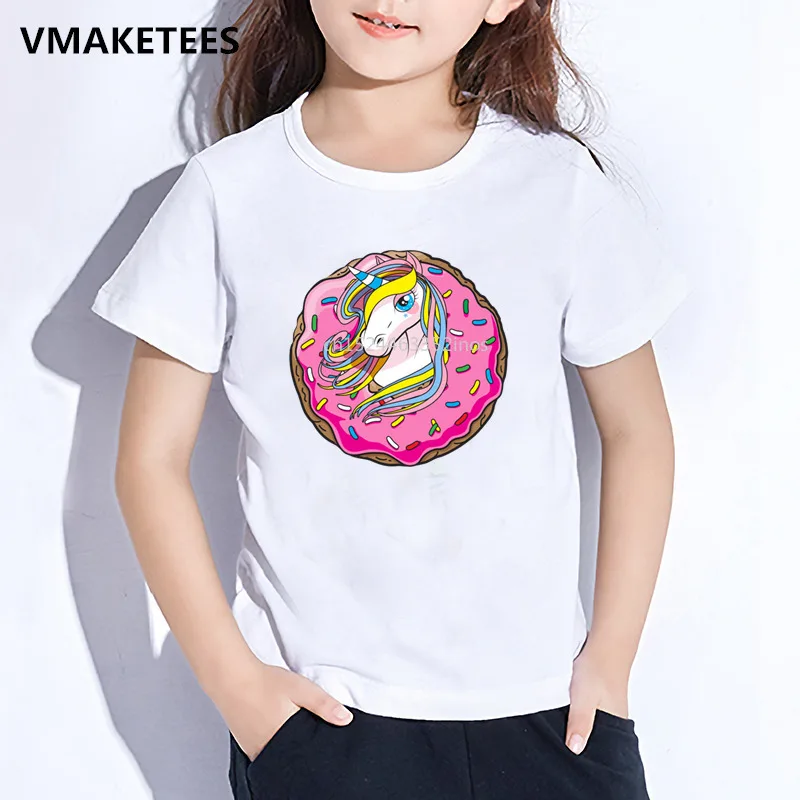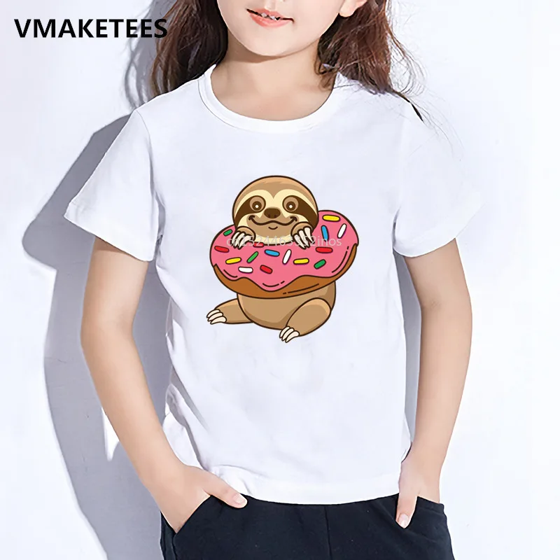 Детская летняя футболка для девочек и мальчиков, Детская футболка с рисунком единорогаленивогомопса в розовом пончике, футболка с мультяшным принтом, милая Забавная детская одежда