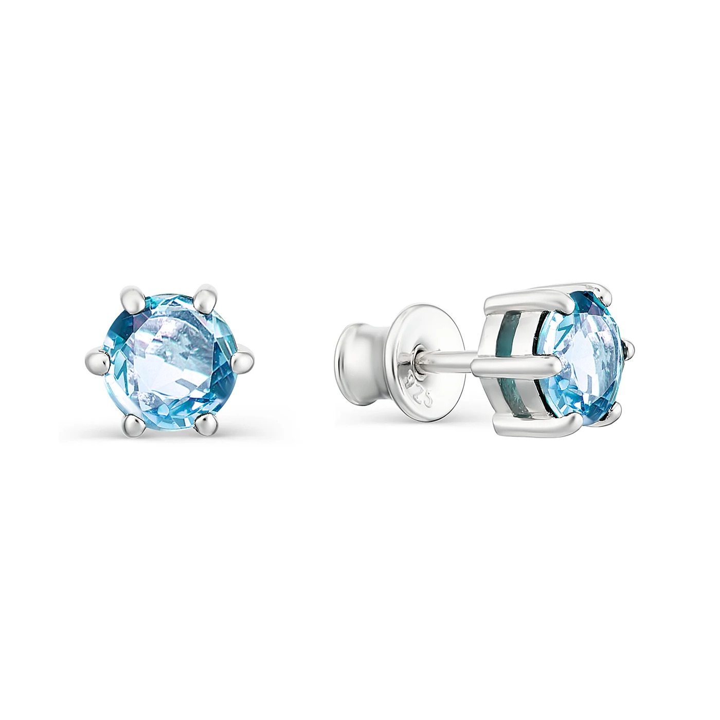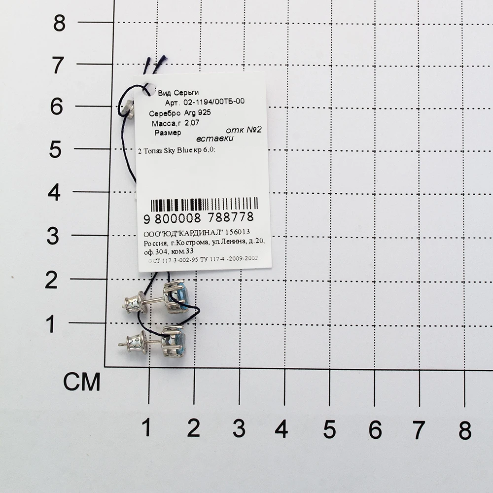 Серьги-пусеты из серебра с полудрагоценными вставками (топаз sky blue). Высота изделия: 6,6 мм. Ширина изделия: 6,6 мм.