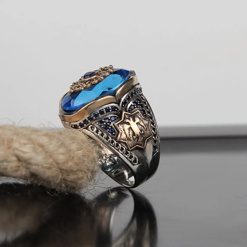 Специальное кольцо для мужчин из натурального сапфирового камня и с...
