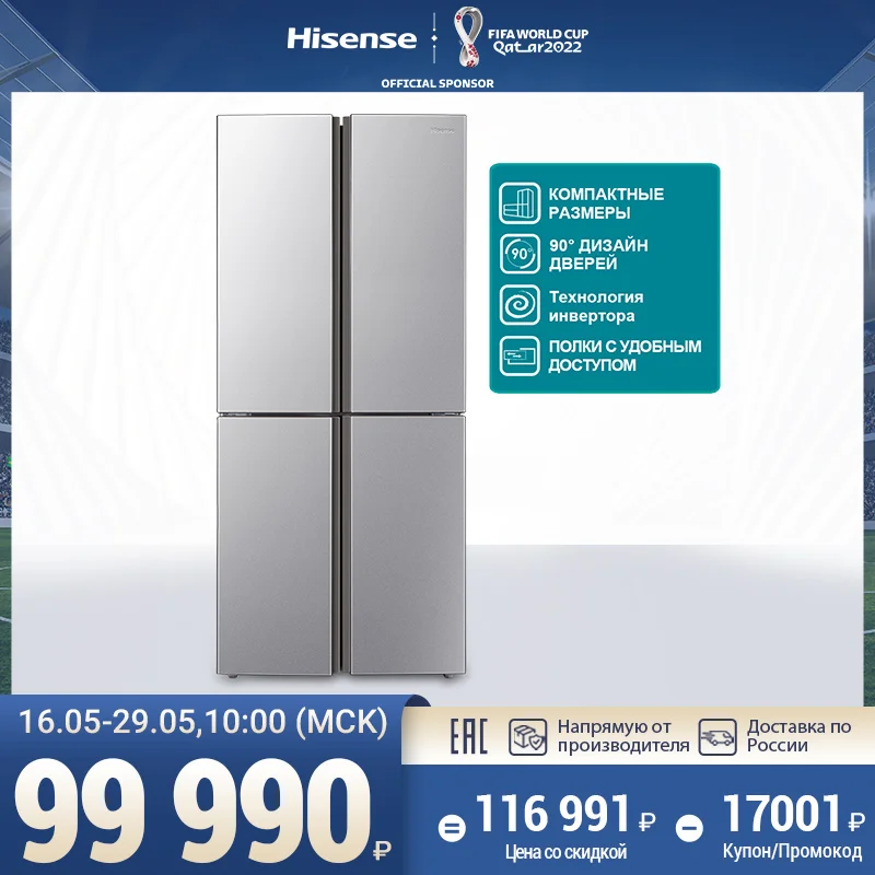 Hisense Инверторный холодильник RQ515N4AD1 Свежесть и энергоэффективность 2 в 1, 394 лИнверторный компрессор