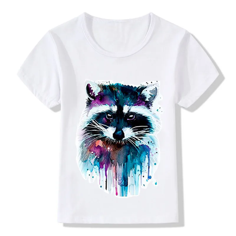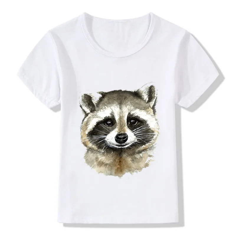 Детская забавная футболка с акварельным рисунком енота, Детская летняя Милая одежда, удобная футболка для мальчиков и девочек