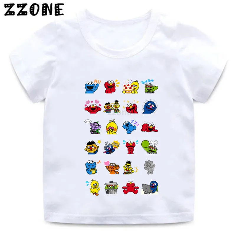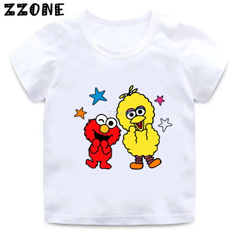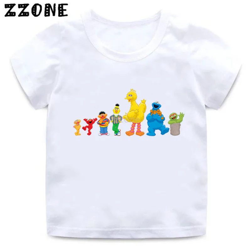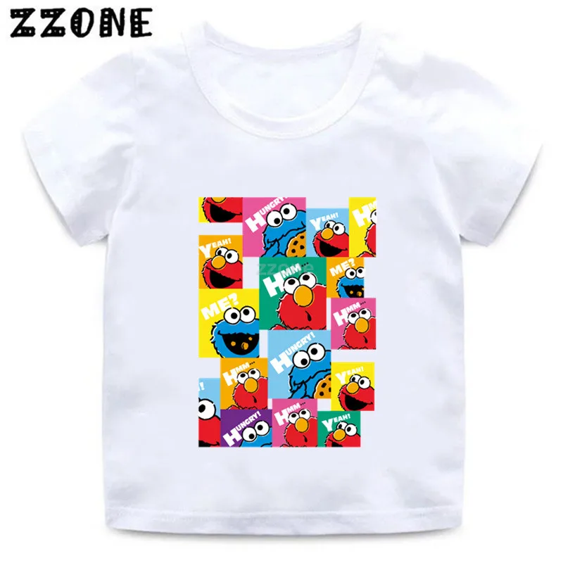 Футболка с мультяшным принтом Улица Сезам для мальчиков и девочек детская забавная одежда с изображением печенья монстра и Элмо Детская летняя футболка