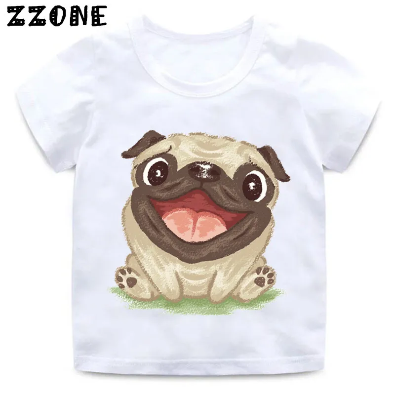 Детская забавная футболка в стиле ретро с цветочным принтом мопса акварельным принтом летние белые топы для девочек и мальчиков детская повседневная мягкая футболка