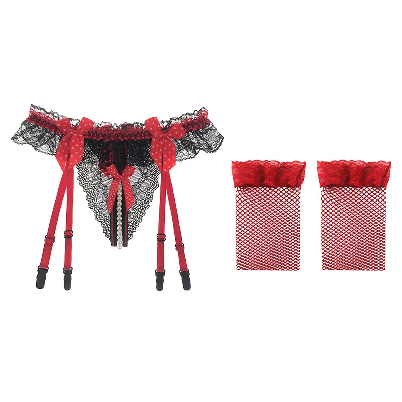 Женский комплект из кружевных трусиков Sitonjwly, кружевные трусики-подвязки с бантиками и поясом с заниженной талией, Чулки с подтяжками, 2019