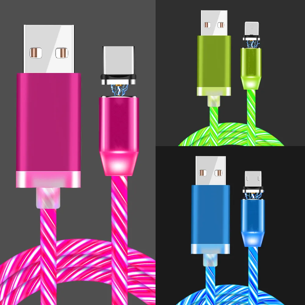 Светящийся Магнитный зарядный кабель Type-C Micro USB для Samsung A21S A5 huawei Honor 9a Asus Zenfone Max Pro Nubia M2, зарядное устройство для телефона