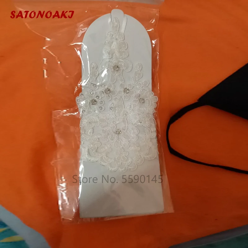 Элегантные кружевные короткие свадебные перчатки с бисером, свадебные перчатки 2020 без пальцев, Белыйцвет слоновой кости, свадебные аксессуары