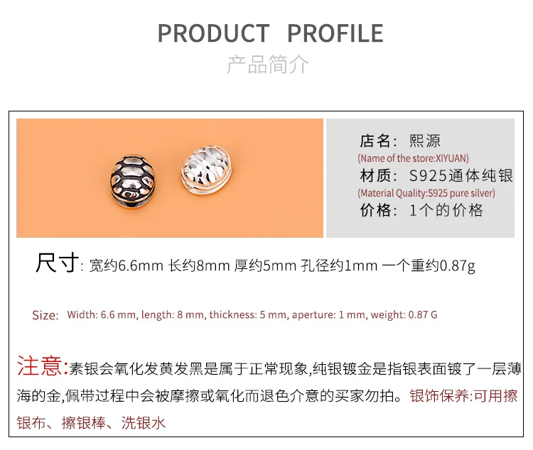 Бусины из чистого серебра 925 пробы в виде черепахи
