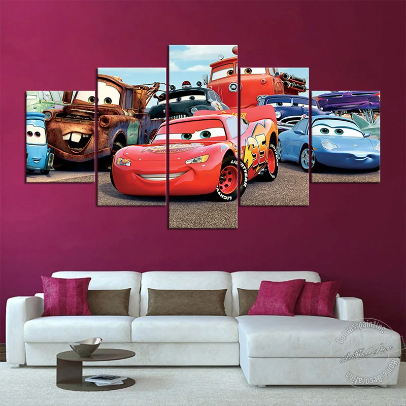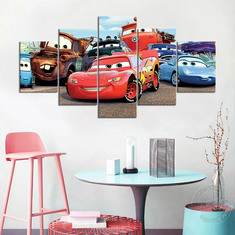 Картина из мультфильма машинки без рамки, постер из HD фильма, Фло, молния, Маккуин, мэтер, Салли, Настенная картина для декора детской комнаты, 5 шт.