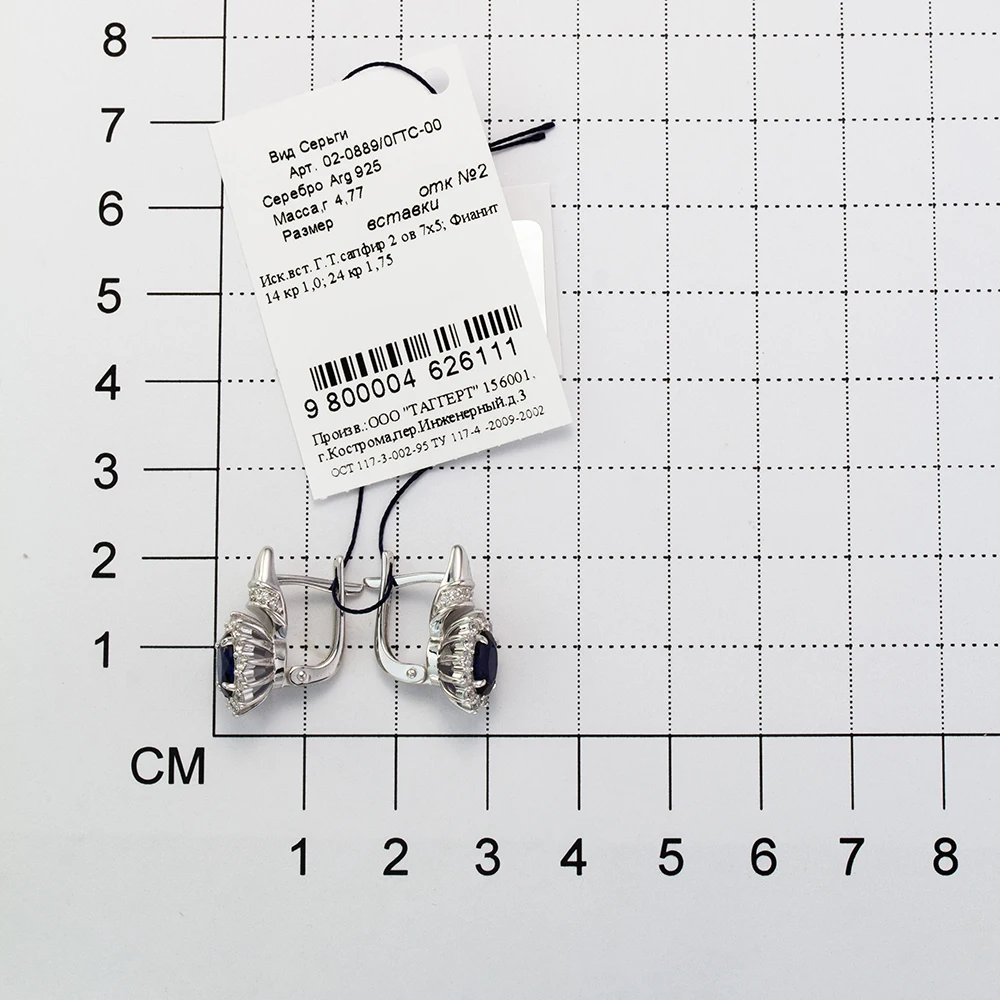 Серьги 2021 тренд из серебра 925 с покрытием из родия, гидротермальный сапфир. Бесплатная доставка с ювелирной фабрики в России