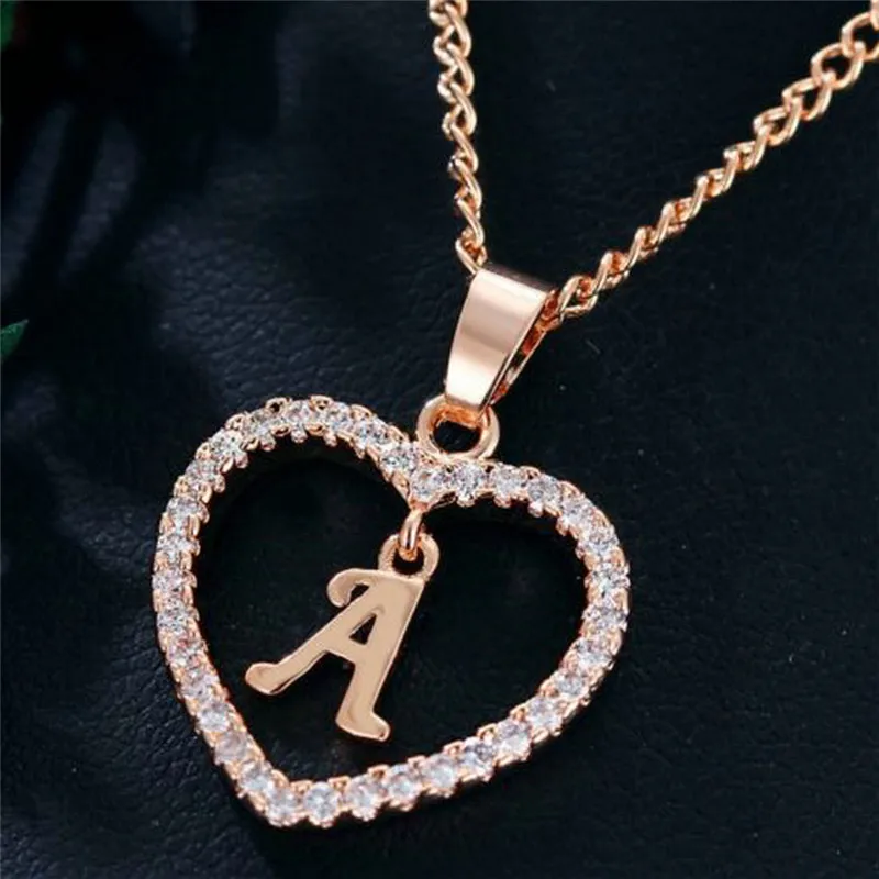 Ожерелье женское с кулоном в виде сердца, 26 букв, с цирконом
