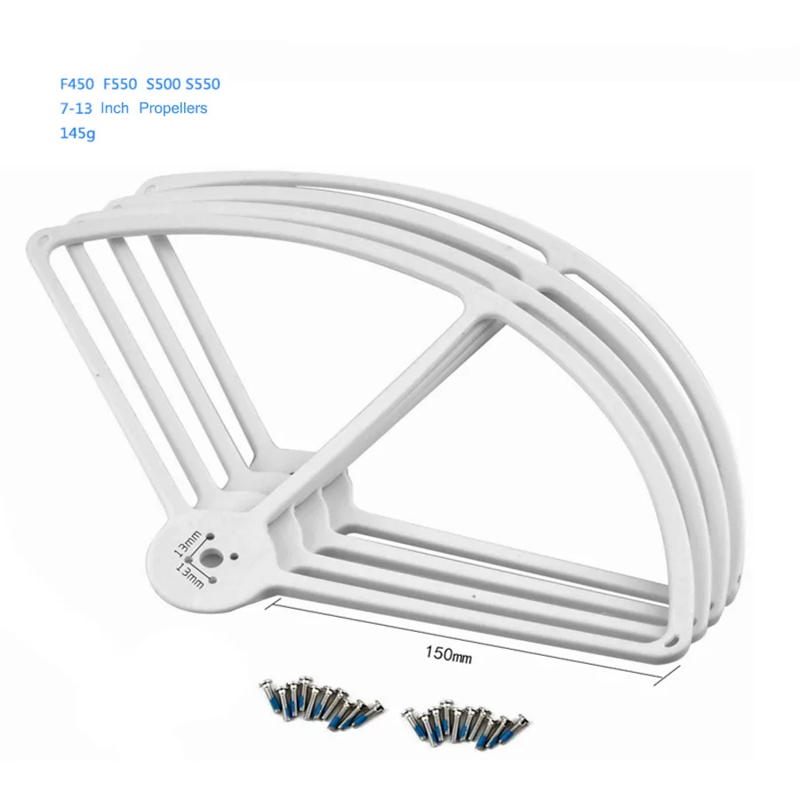 100% новинка, высокое качество! Цвет: белый Материал: пластик Совместимая модель: F450 / F550 / S500 / S550 Вес: 135,8 г С помощью этих защитных опор вы никогда не сломаете свой реквизит и не разобьете свой F450 F550, случайно врезавшись в деревья, стены или любые другие препятствия. Посылка: 4 защитных кольца 8 фиксированных винтов