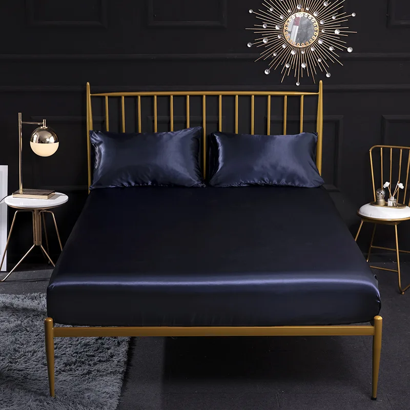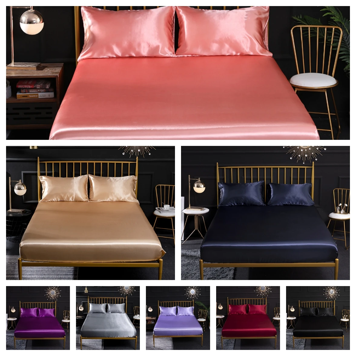 Простыня на резинке из искусственного шелка и сатина, однотонная, г...