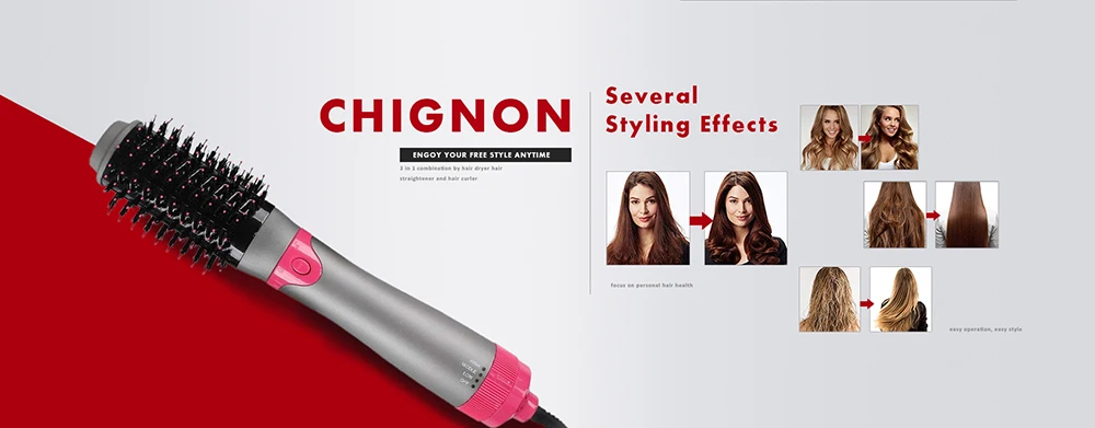 Фен для волос, щетка, один шаг, стайлер для волос и волумайзер, шиньон, Стайлинг, выпрямитель, бигуди, расческа, салонный инструмент, анион, щетка с горячим воздухом