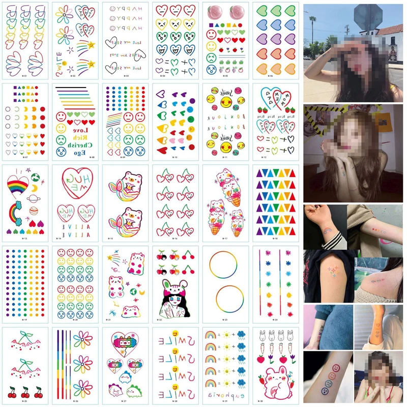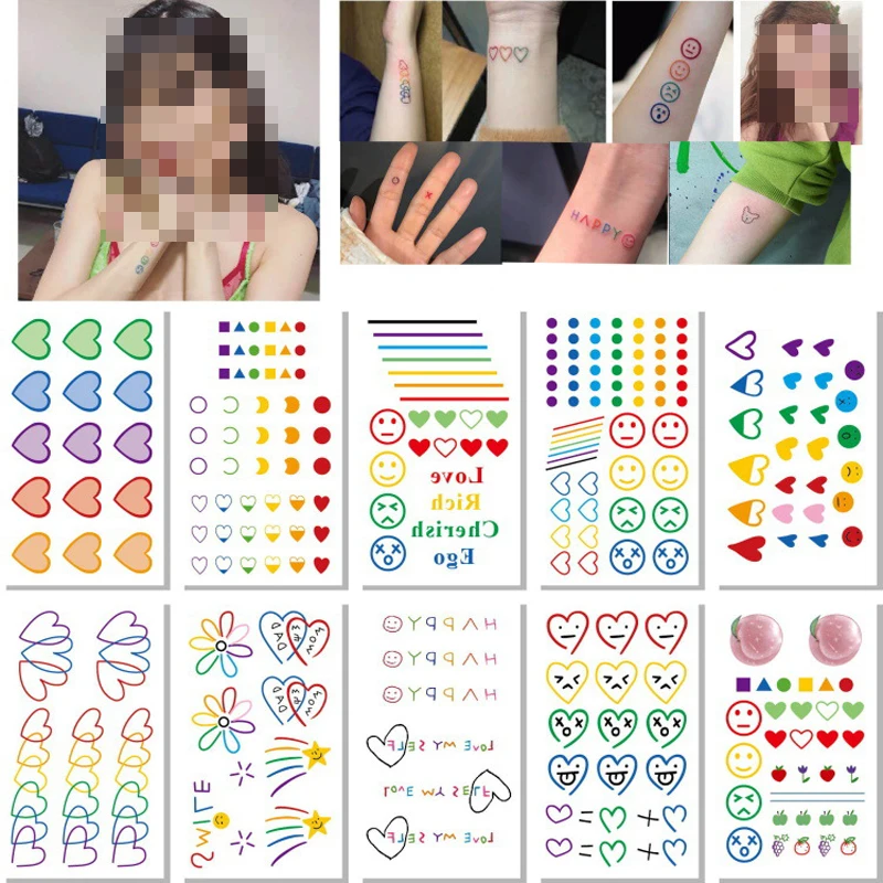 53060 шт в цветах радуги, выражение татуировки Стикеры уход за кожей лица ручной милый боди-арт Поддельные временное тату Водонепроницаемый Taty вечерние Декор