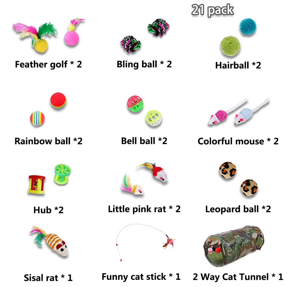 Набор игрушек для кошек, туннель складной, 21 шт., шары с перьями, в форме мыши