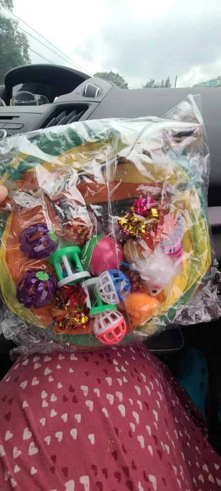 Пришло очень быстро. Хорошие игрушки для котёнка, все яркое и звенит