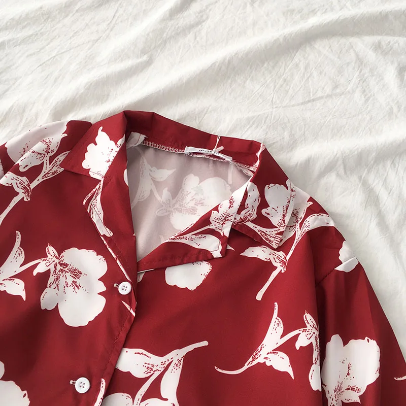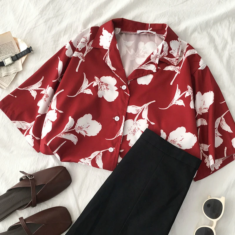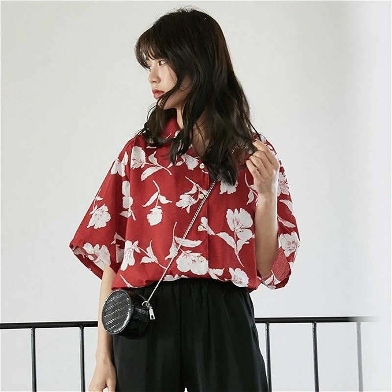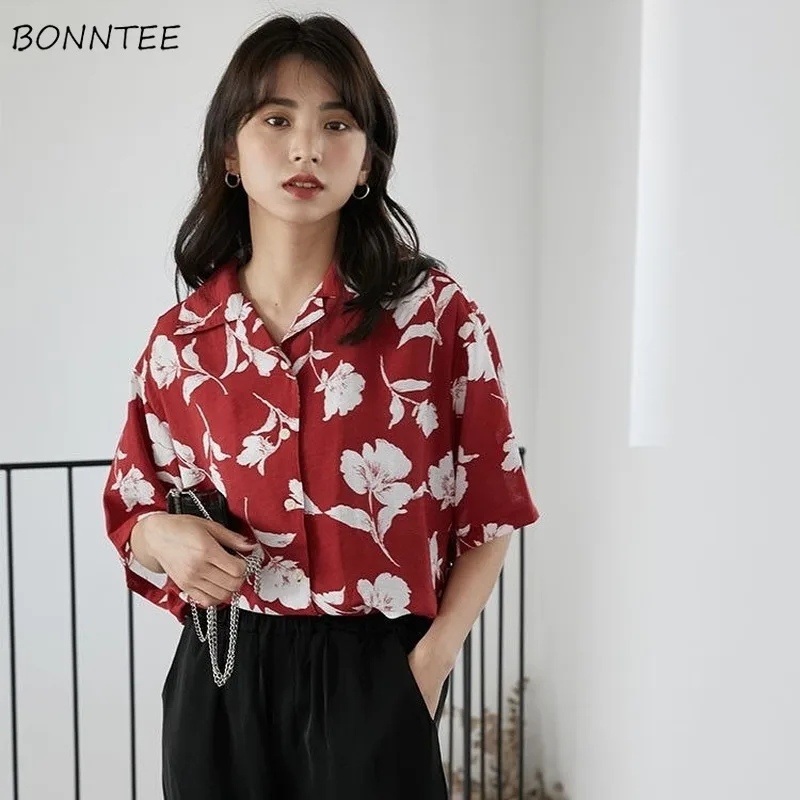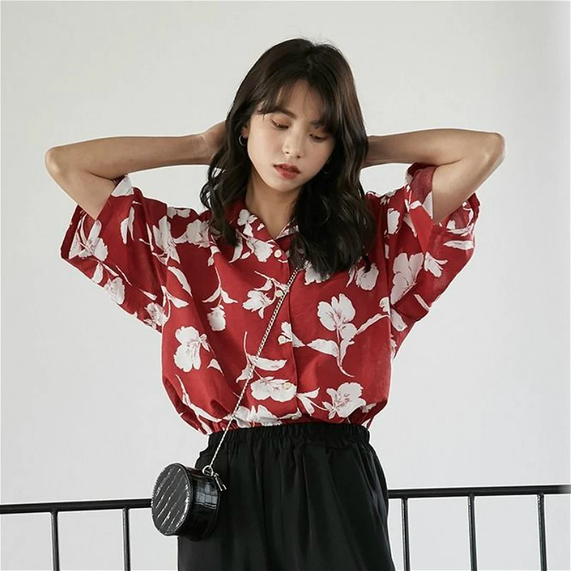 Блузка женская с отложным воротником, модная универсальная рубашка в Корейском стиле, с цветочным принтом, в стиле Харадзюку, для колледжа, на лето