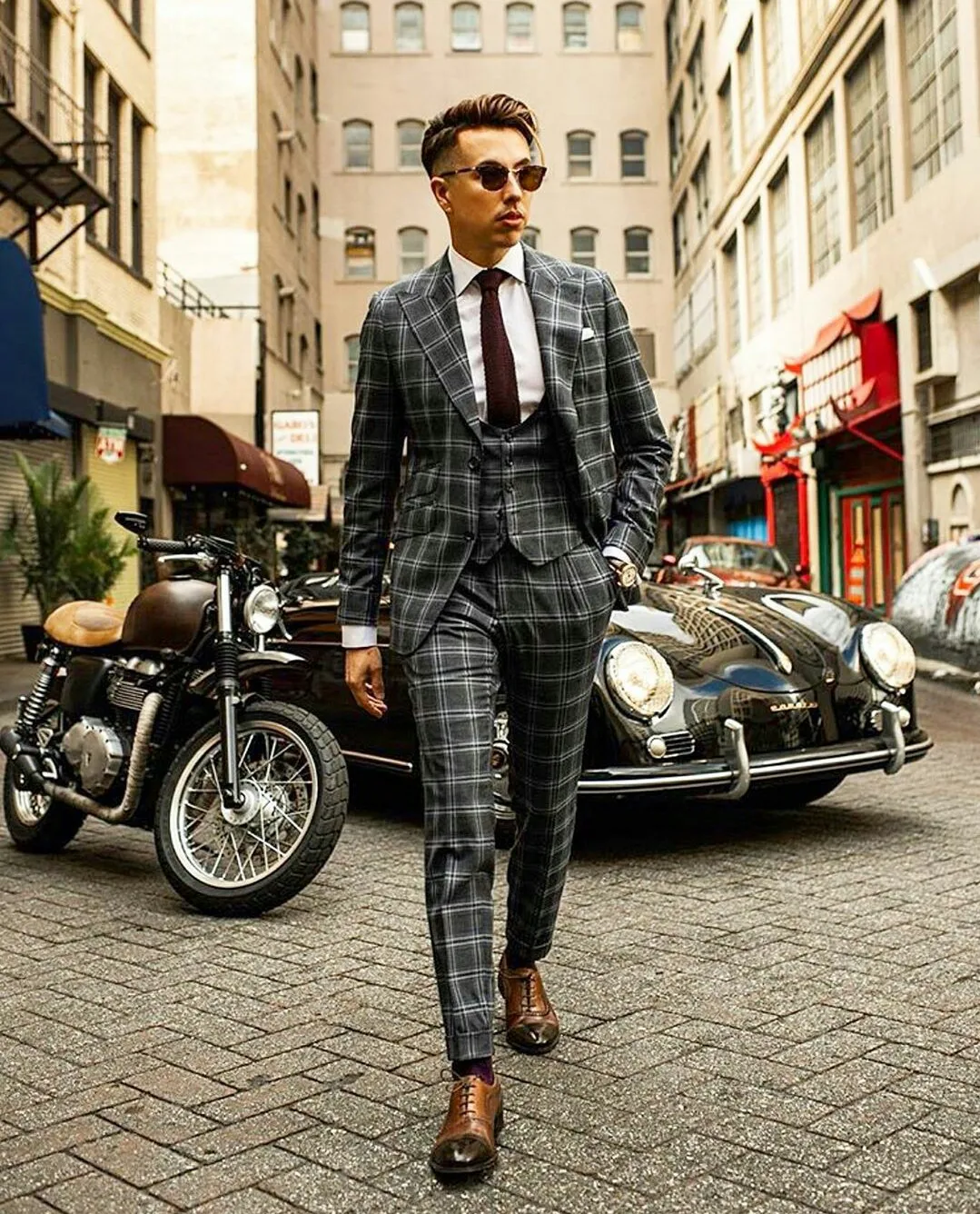 Классические клетчатые мужские костюмы с двумя пуговицами, одежда д...
