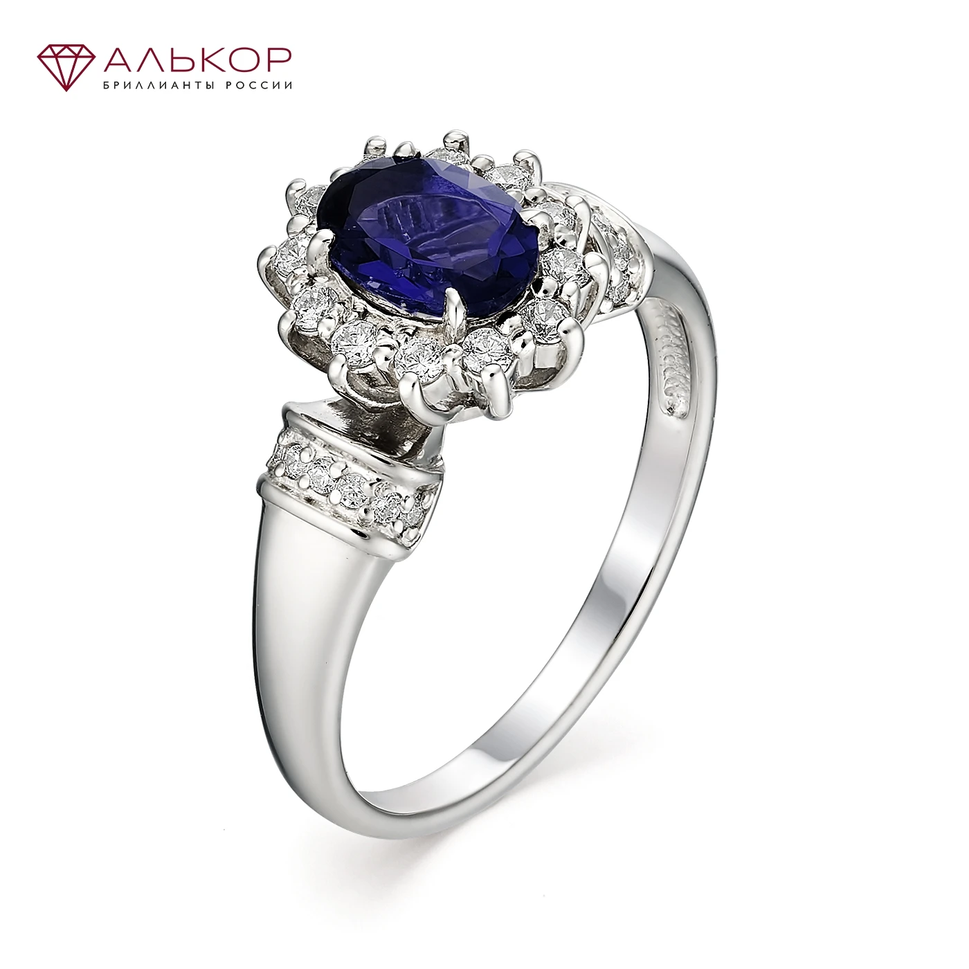 Кольцо тренд 2021 из серебра 925 с покрытием из родия, гидротермальный сапфир. Бесплатная доставка с ювелирной фабрики в России
