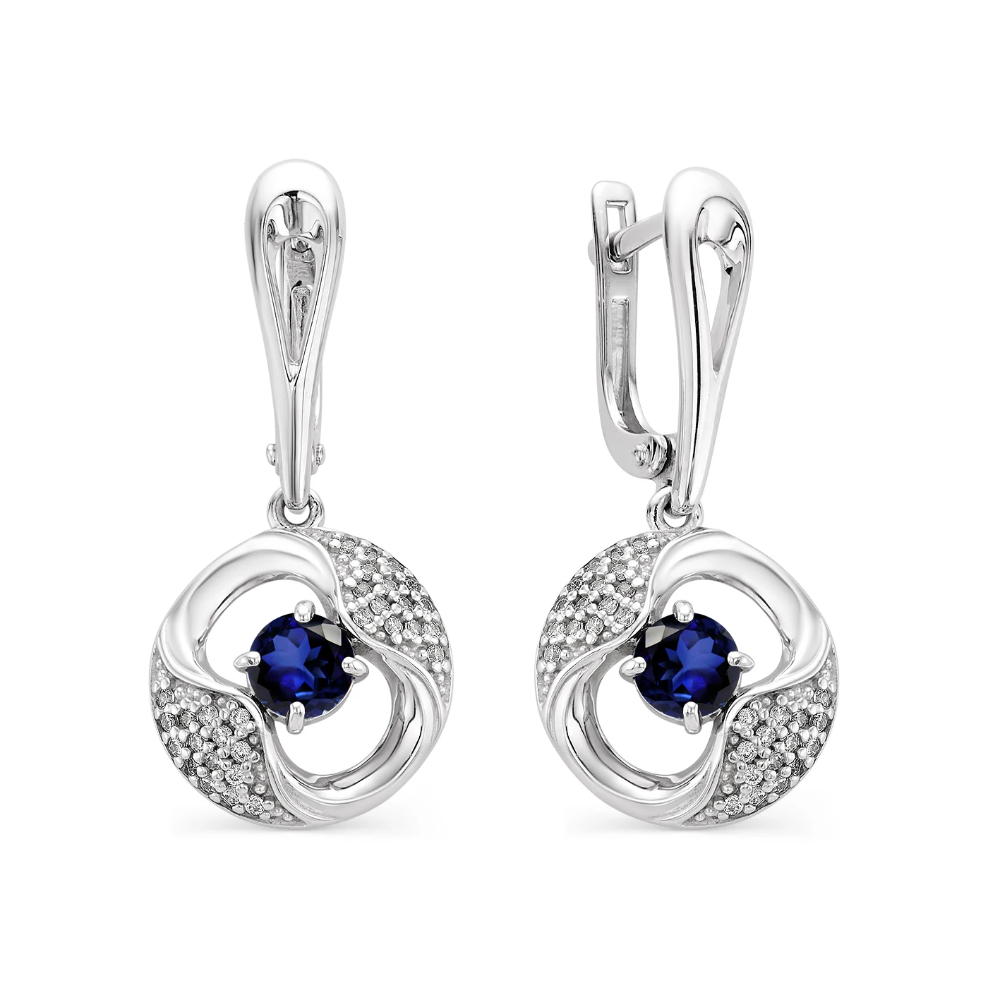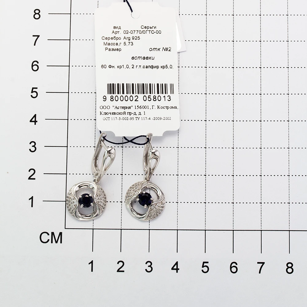 Серьги 2021 тренд из серебра 925 с покрытием из родия, гидротермальный сапфир. Бесплатная доставка с ювелирной фабрики в России