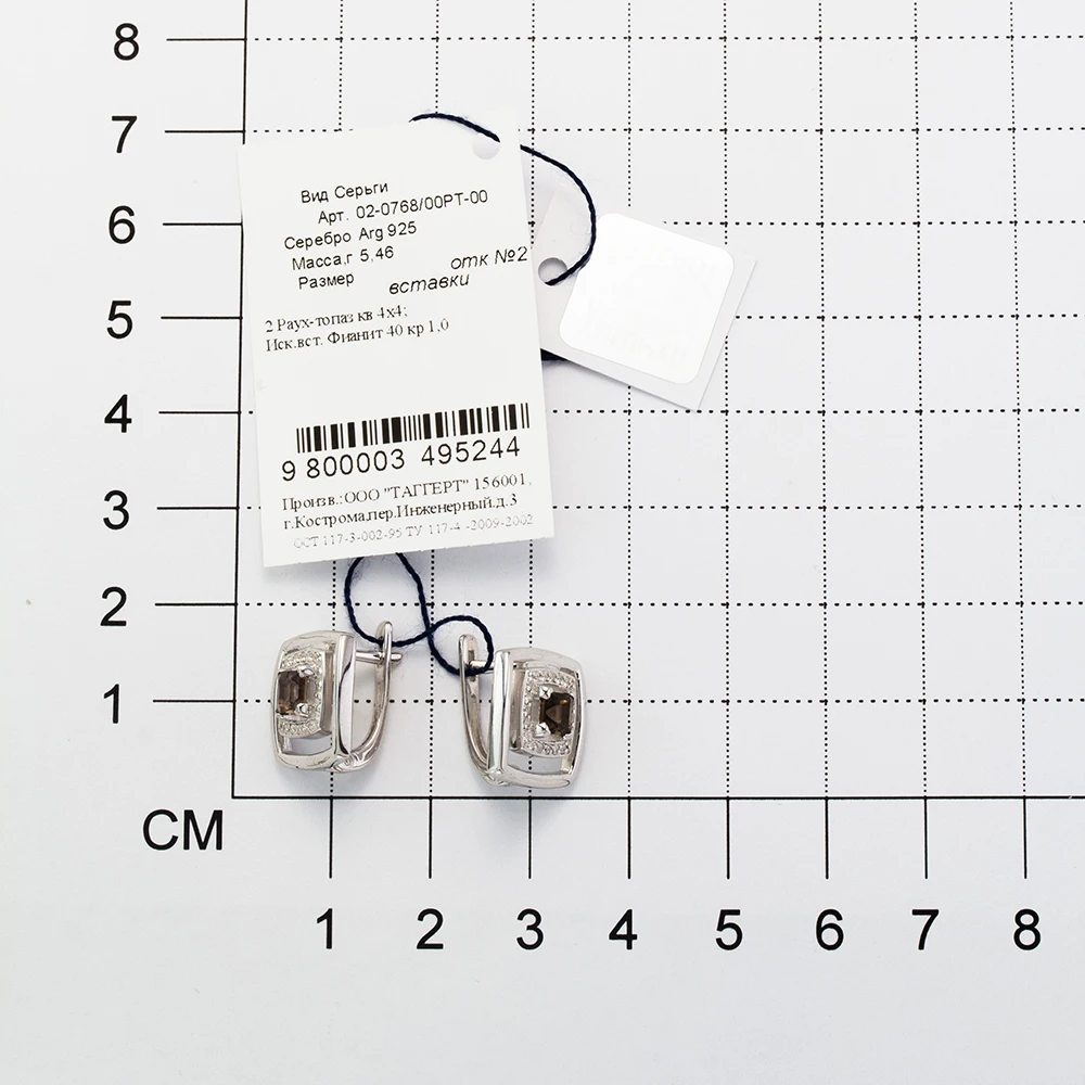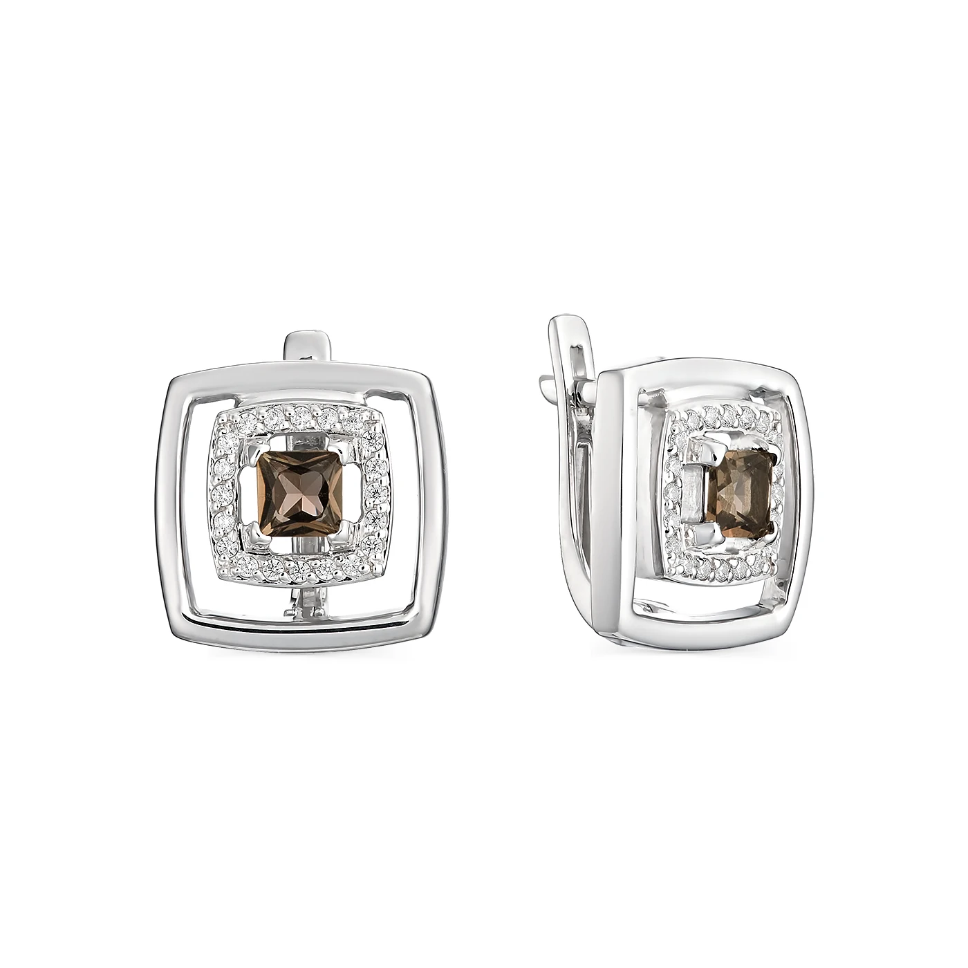 Серьги 2021 тренд из серебра 925 с покрытием из родия, вставка: раухтопаз. Бесплатная доставка с ювелирной фабрики в России