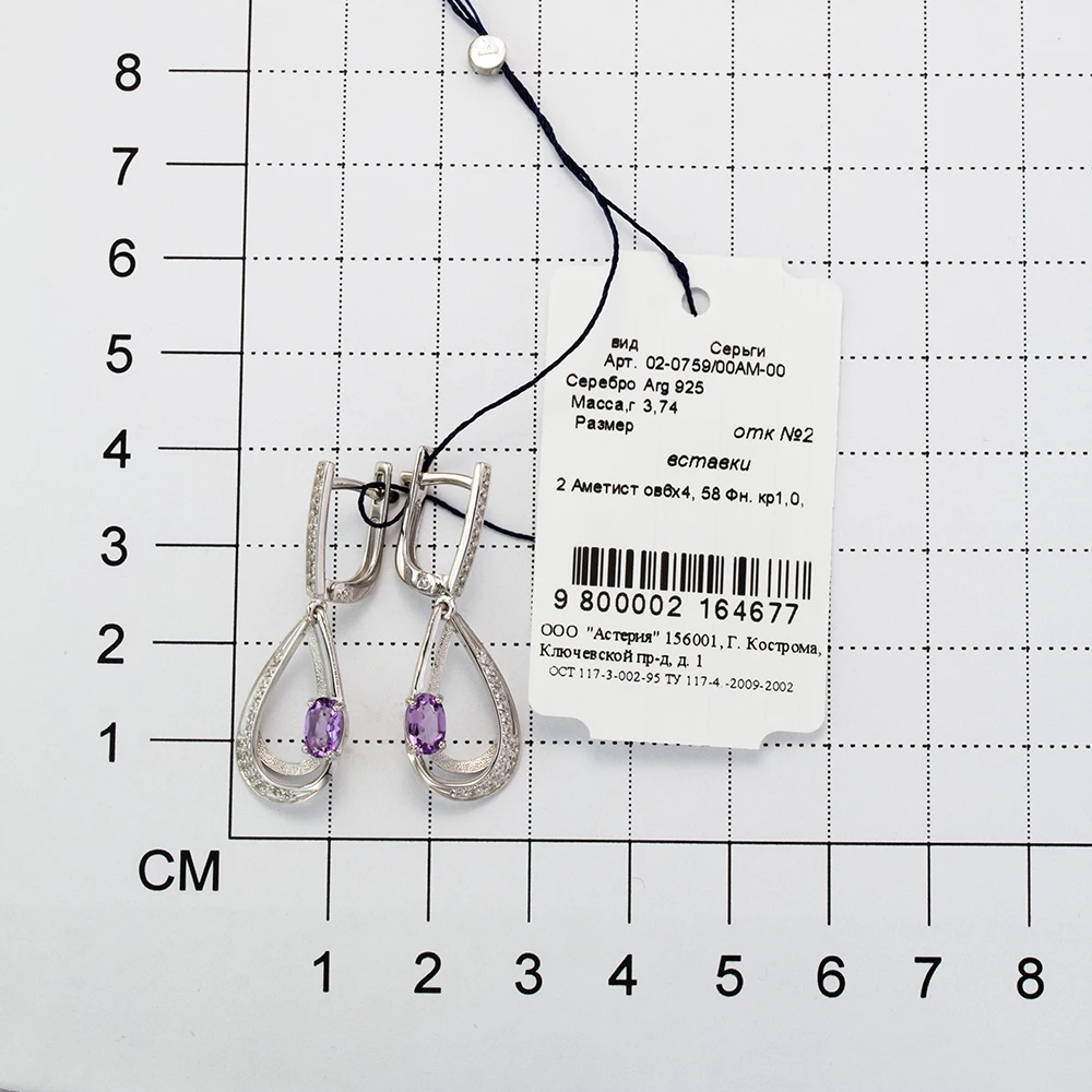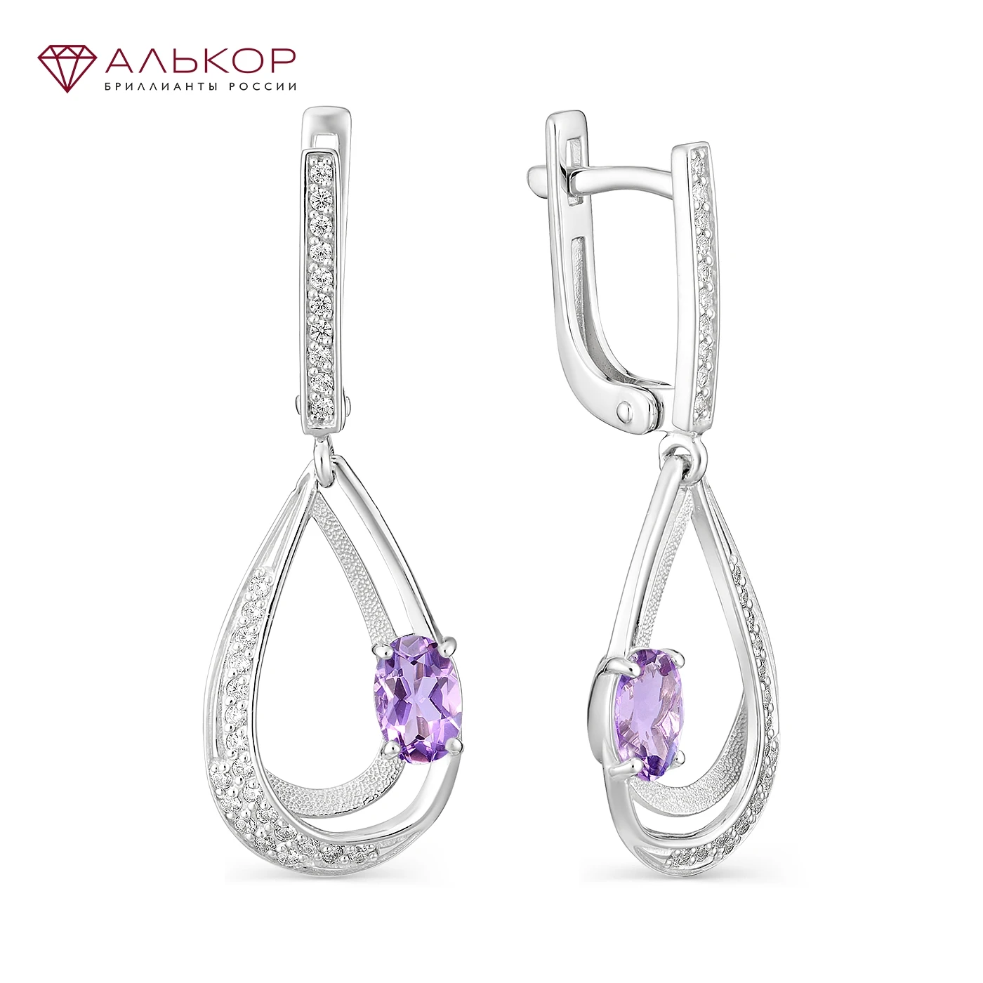 Серьги 2021 тренд из серебра 925 с покрытием из родия, вставка: аметисты. Бесплатная доставка с ювелирной фабрики в России