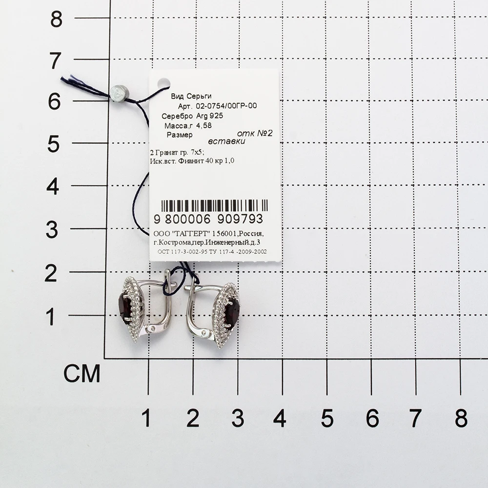 Серьги 2021 тренд из серебра 925 с покрытием из родия, вставка: гранат. Бесплатная доставка с ювелирной фабрики в России