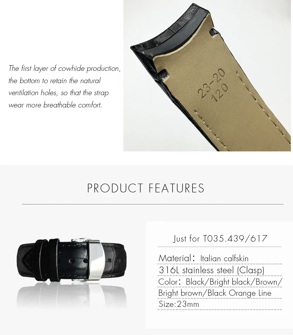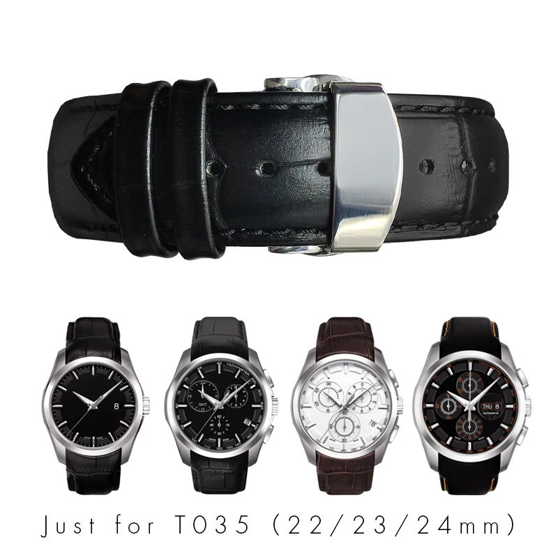 Ремешок из телячьей кожи для часов Tissot T035, черный браслет из в...