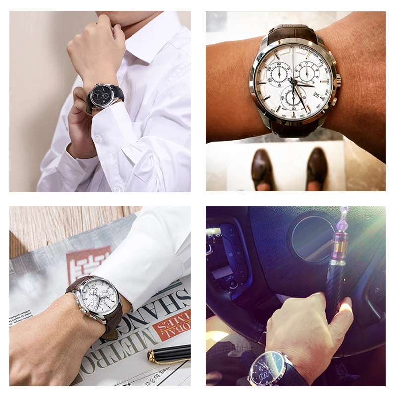 Ремешок кожаный для мужских часов, черный синий коричневый браслет ...